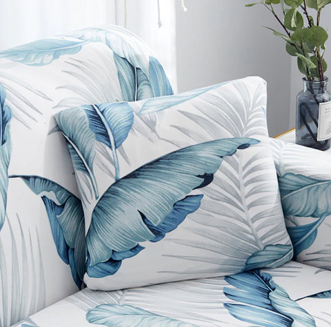 Stylish blue leaf pillow cover,making you cool and refreshed.