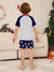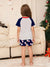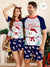 White Snowman Cartoon Print Christmas Pajamas with Short Sleeves and Shorts