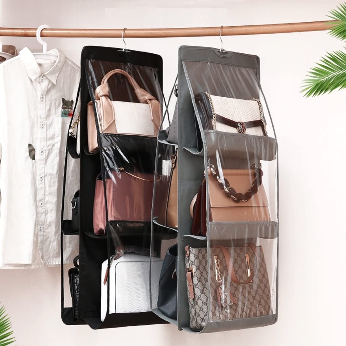 The handbag hanging organizer is made of PVC+ thickened non-woven fabric, non-irritant and breathable. ensuring it sturdy and adding no bulk for your closet; Durable and washable.