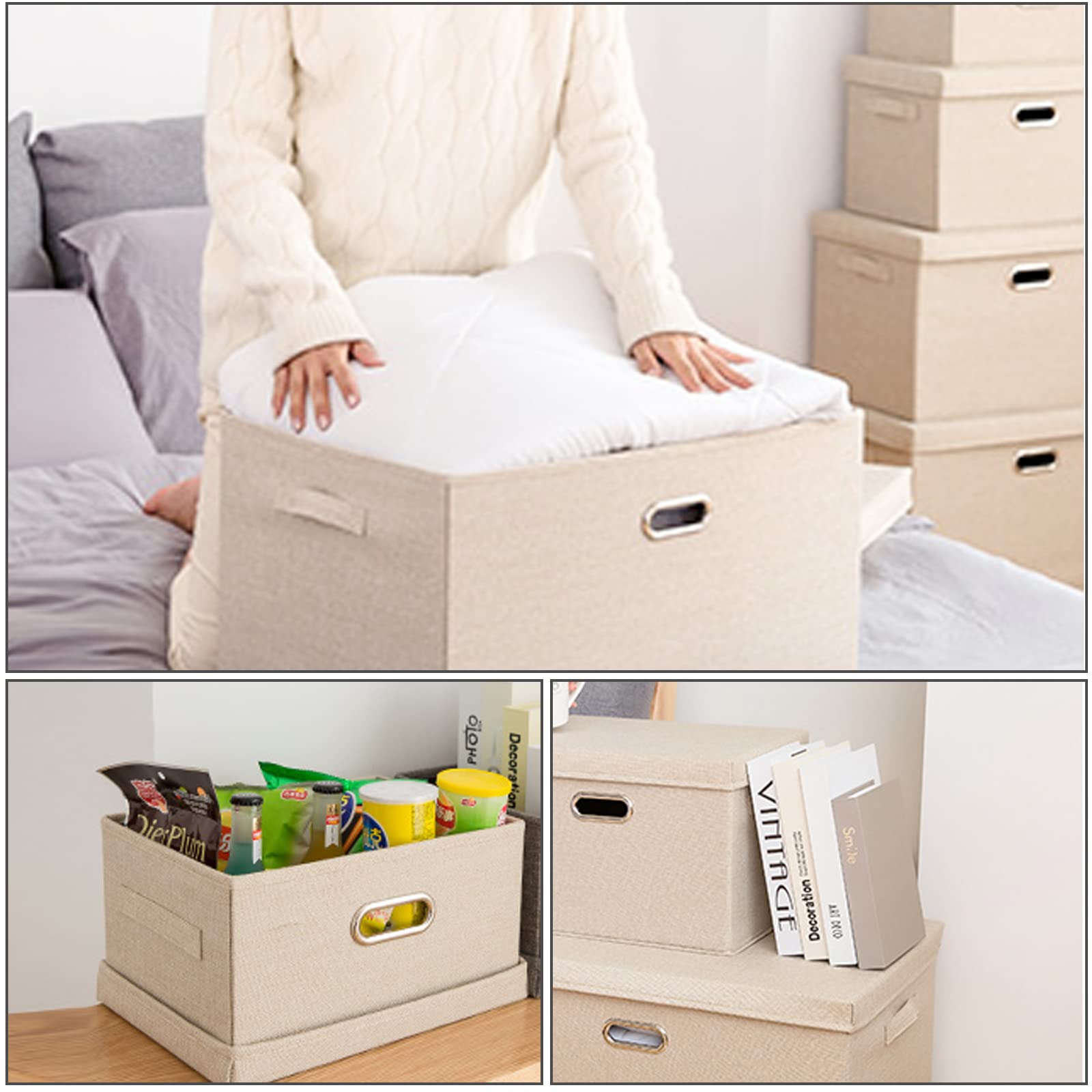 Covered by thick textured cloth, our large lidded storage bins prevent daily wears and tears. They can keep dust and bugs out also, avoiding dirt and musty smell. You can use these decorative storage boxes with lids everyday or for long term storage.