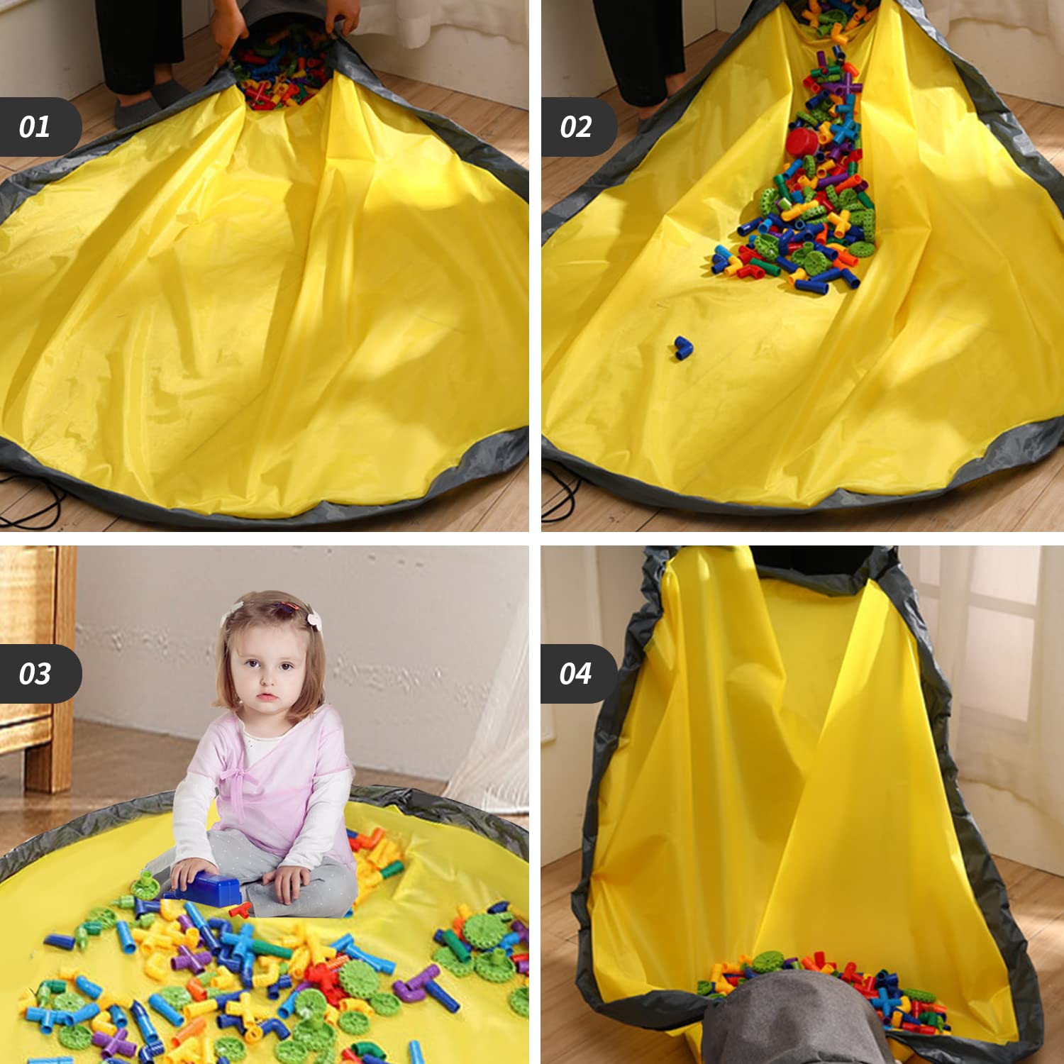 This toy storage can make scattered toys instantly packed up, no longer let you pick up the scattered toys a little; it can create a play space for children, create a place for toys, perfect to help you solve the trouble of organizing toys, this play mat is the best choice for toys at home for storage.