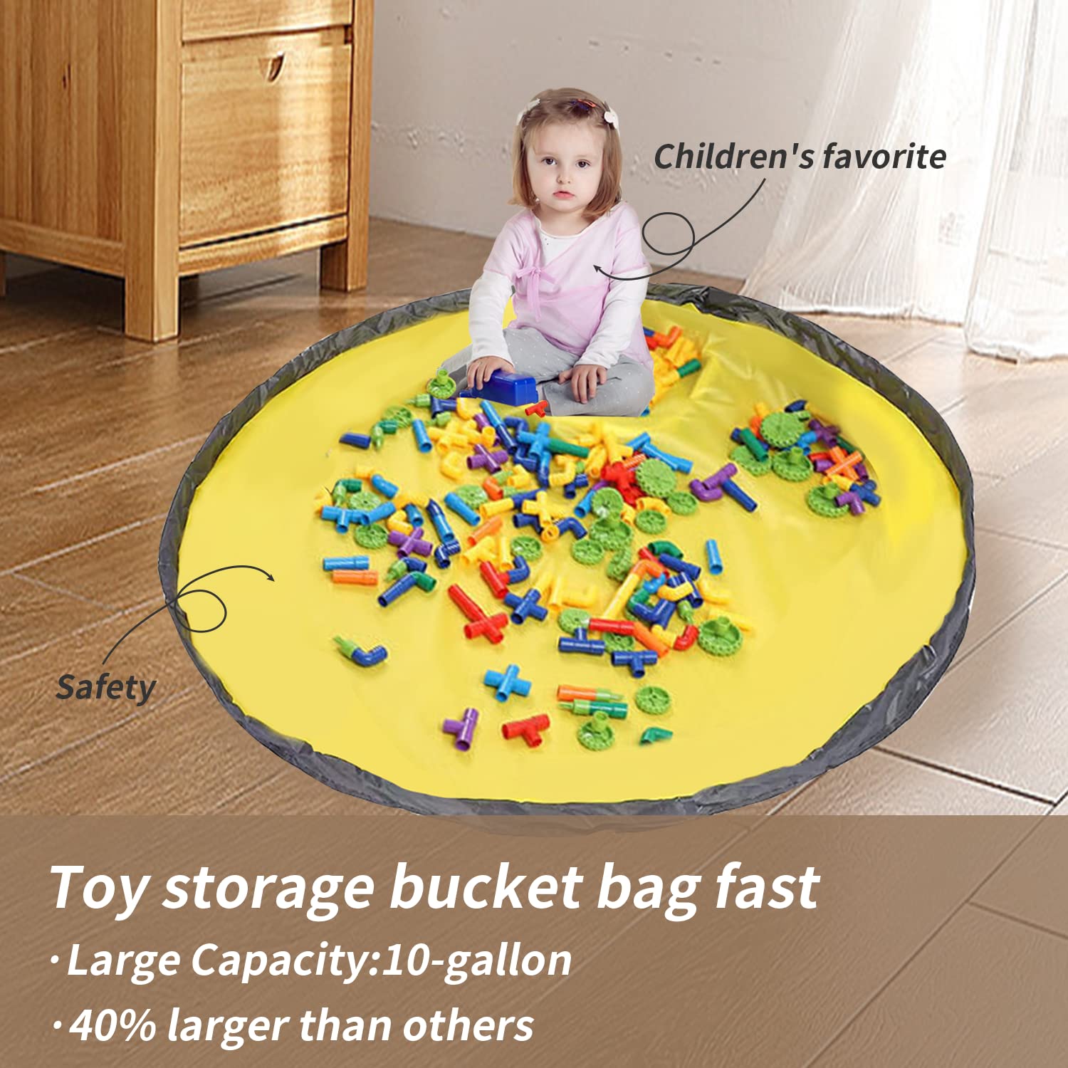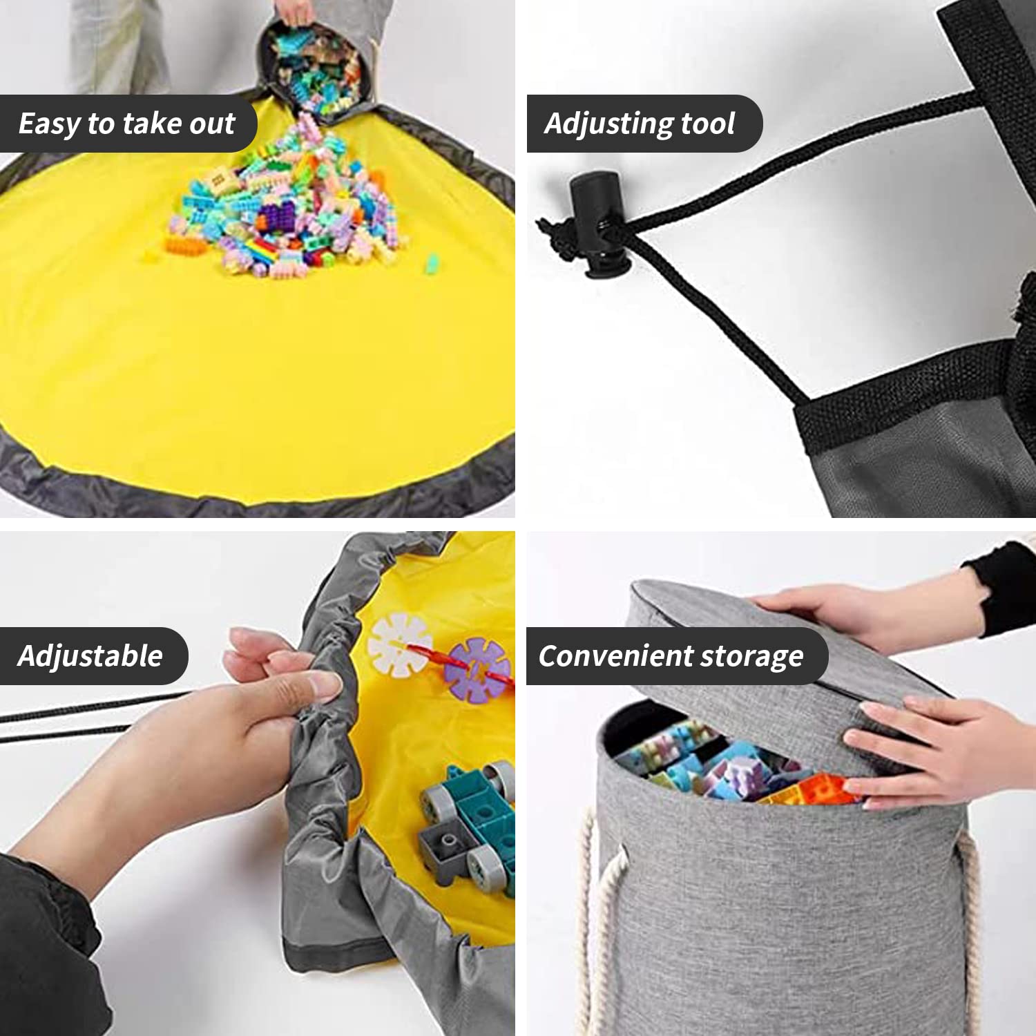 Our super fast clean-up block toy storage organizer is uniquely designed with easy to use steps, the bag is double fabric reinforced, neatly bound, pull-out storage, quickly slide the toys back into the storage bag, more convenient to use, one child can perform the operation, for families, absolutely a perfect playroom storage box.