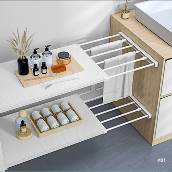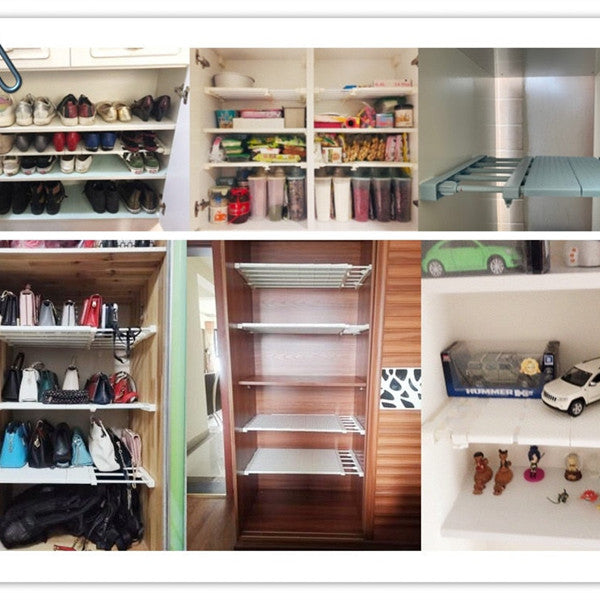 Use for wardrobe/closet dividers, kitchen, bedroom, bathroom, utility rooms, garages, etc. This item is perfect for different sizes of a wardrobe. Storage, organizing, and another all-in-one. Telescope rods with the length adjustable.