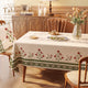 Table Cloth is made of mid-weight durable cotton linen, non-slip, moderate stain resistant and machine washable.Chair Cover is made of 85% polyester/15% spandex fabric with small checks jacquard pattern. High elasticity, soft and anti-wrinkle, durable and long lasting, It has elastic edges, easy to install and elasticized bottom will secure the chair cover stay in place firmly.Both the table cloth and the chair cover are waterproof.